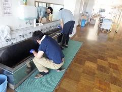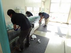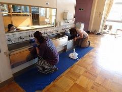 学校内の手洗い場に墨や水垢が付着し、なかなか落ちないので、PTA会長さんをはじめ、PTA環境部の方々のお力を貸していただきました。