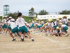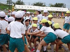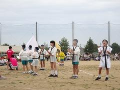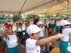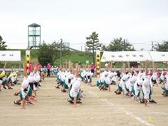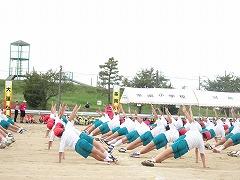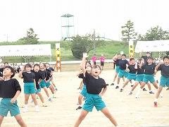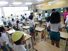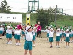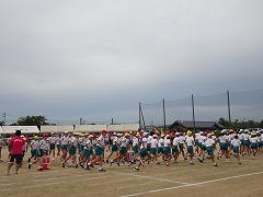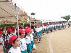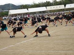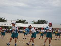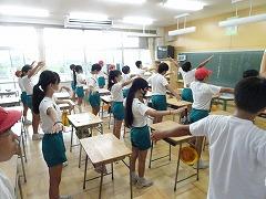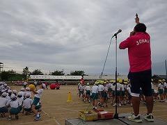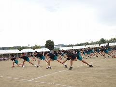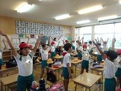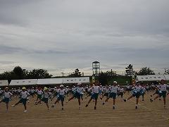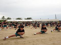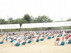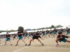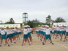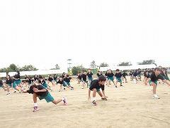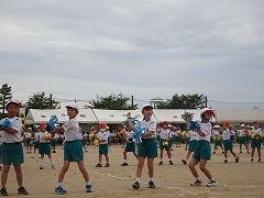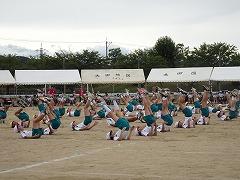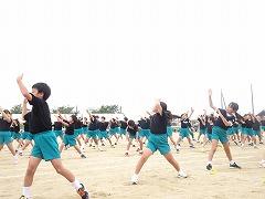 ↓学級で準備運動として、ラジオ体操を行ってから運動場へ行きました。
