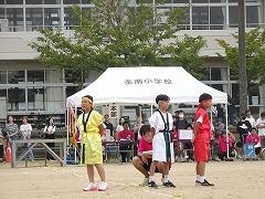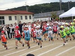 ↓3年徒競走 スピードスター!風を切って駆け抜けろ 4年新時代 ゴールめざしてGo!