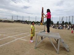 ↓児童代表のスローガン発表、応援団による選手宣誓です。
