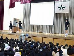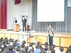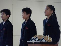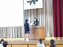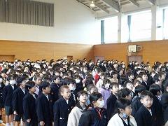↓校内書初め大会の表彰式です。冬休みもたくさん練習したことでしょう。書初め大会当日も、みんな真剣に取り組んでいました。今年も字の上達と学業成就に向けて努力していきましょう。