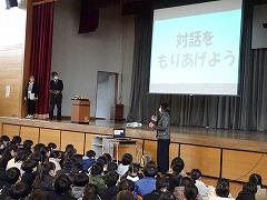 ↓学習の今月の目標のお話です。2月は「対話を盛り上げよう」です。盛り上げる方法を実際にやってみて紹介しました。
