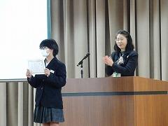 ↓英語スピーチコンテストの表彰式です。英語力の上達に向けて大きな一歩となりました。表現力、発音、内容すべてが素晴らしかったです。出場者全員の努力と、優秀賞受賞ペアのスピーチ力を称え、表彰しました。