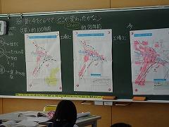 ↓3年社会 津幡町の今と昔を比べてどこが変わったか、見つけています。100年前、70年前、現在の津幡町を地図を見比べて変化を読み取りました。