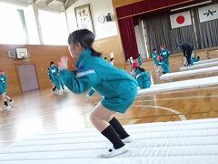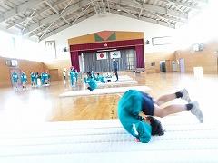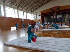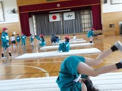 ↓2年体育 マット遊び運動です。くるくる回る後ろ回転の技に挑戦!何回もチャレンジしているうちに、コツをつかんだようです。おみごと‼