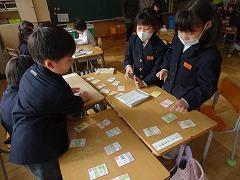 ↓1年 昔遊び カルタ遊びで、津幡かるたに挑戦!