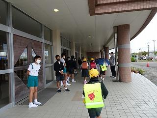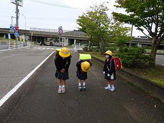 ↑礼儀正しいあいさつ、すてきです。交通安全の見守りの方々にも「自分の力を出して」、あいさつをしてください。