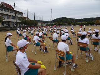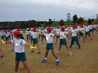 運動会の開閉会椎の練習です。協力の心で、自分の力を出し切る運動会にしたいと思います。