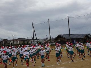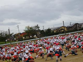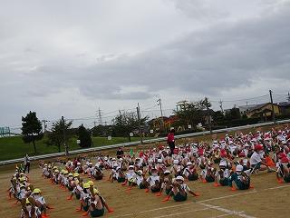 ↑1年生も素晴らしい態度で待っています。いよいよ全校練習開始です。