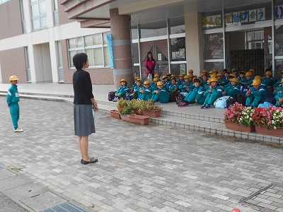 出発式をして,いよいよ宿泊体験学習スタート!ドキドキ・・・ワクワク・・・