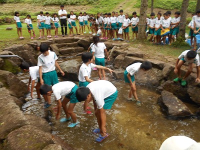 最初の活動は,「イワナつかみ」。元気のいいイワナを自分の手でつかむ楽しさを学びました。その後にそのイワナを・・・