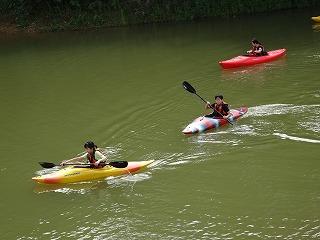 ↓反対側の池では、6の2のカヌーチームが、カヌーを楽しんでいます。
