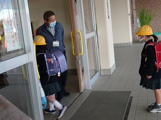 ↑遠くから5年生の元気なあいさつ、近くで礼儀正しい1年生のあいさつ、どちらも気持ちがいいです。