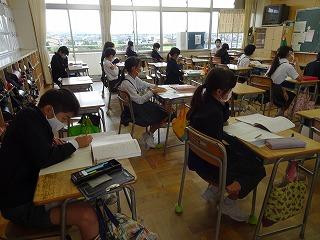 ↓ 昼学習です。10分間自分で解いて、後半の10分は解説をきいて、学びを確かなものにしています。積み重ねが力となります。3の1