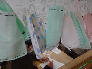 ↓5の2 手作りマスクが飾られています。家庭科の手縫いの学習での作品です。