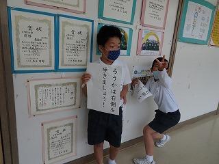 ↓廊下思いやり当番 廊下の正しい歩き方を呼び掛けます。
