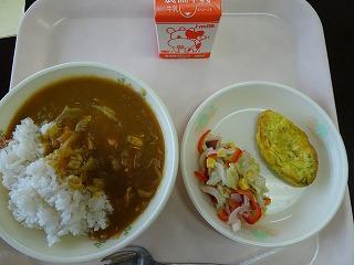 ↓ 今日の給食は、カレーです。給食のチキンカレーは大人気メニューです。能登いかのマリネにホウレン草の卵巻きがついて、栄養バランスも最高です。明日に向けてエネルギーが蓄えられました。