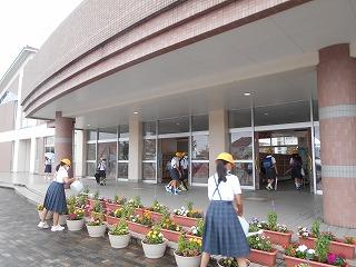 ↑ 「人権の花」の花数が多くなってきました。毎日愛情の水やりをしてくれているおかげです。
