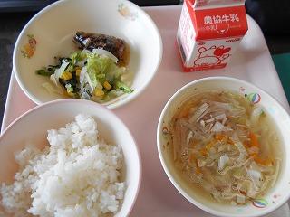 ↑今日の給食は、さんまのかぼすレモン煮、小松菜のソテーにマカロニスープでした。さんまをかぼすとレモンを混ぜて煮てあるので、さっぱりしていて、しかも、さんまの旨味が口の中に広がりました。野菜たっぷりのスープもマカロニが入っているとまろやかになり、子供たちは食べやすくなります。教室では、お替りしたい子が多く、いつも残さず食べてくれます。