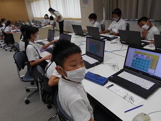 ↑3の2 社会 ICTサポータさんと一緒に、地図記号のプログラミングを使って、地図記号の復習をしました。大学生のサポータさんも支援してくださいました。
