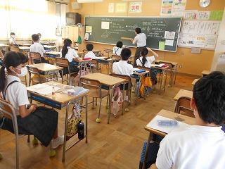 ↑ 7月後半から8月いっぱい、大学生の皆さんが学習サポーターとして、丸付けをしたり、学習支援をしたりしてくださっていました。今日で終了となりました。お昼の放送で、子供たちにメッセージをくださいました。廊下で出会ったら挨拶をしてくれてうれしかった、コロナ感染防止で大変ですが頑張ってくださいなど、メッセージをくださいました。