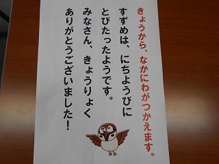 ↑ 子すずめは、6月6日(土)は、まだ中庭にいました。親すずめがエサを運んで食べさせているところを土曜日に学校に来こられた先生は見ていました。6月7日(日)の午前中も、学校に来られた先生は、子すずめが中庭で元気にしている姿を見ていました。ところが、午後には、もうどこを探しても子すずめさんはいませんでした。きっと、無事飛び立てるようになって巣立っていったのだと思います。条南子の皆さんが、優しい気持ちで応援してくれたおかげだと思います。きっと、その子すずめは、条南小学校の周りを飛んで、皆さんに「ありがとう」と言っていると思います。すずめの鳴き声が聞こえてくると、あの子すずめさんかな、元気に育ってよかったね。これからもこの条南の地域で一緒にがんばろうねと、エールをおくっています。