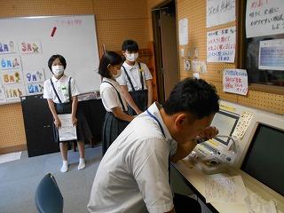 ↑ 朝、生徒指導の先生から、「先あいさつで勝負!」のお話をしました。先週までは、先生と心を通い合わすあいさつじゃんけんでしたが、今週からの先生との挨拶のイベントは、どちらが先に挨拶できるかの勝負です。先に挨拶した方が、気持ちいいですよ。先生たちも強いので、どんどん挑んでくださいね。