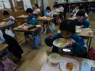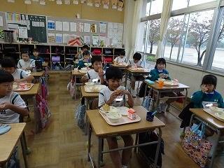 ↑おいしくいただきました。今日は週末読書の本を持ち帰っています。土日は読書の秋を楽しみ、心に栄養を送ってください。また、スポーツの秋、食欲の秋、…いろいろな秋を感じながら過ごしてみてください。校庭の紅葉も徐々に進んでいます。風邪をひかないように、睡眠はたっぷりとってくださいね。来週は新1年生の就学時健康診断も予定しています。来週も、次の学年を目指して、成長を続けていきましょう。