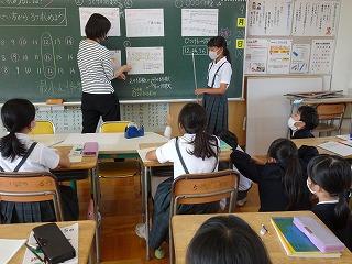↑3の2 道徳 「みんなのわき水」という教材文を用いて、みんなが大切にしたいものについて、自分は大切にしてきただろうかと考えました。「ご自由におつかいください」と札がある公園のわき水の池、そこにたくさんの落ち葉が落ちていました。こうちゃんとけんちゃんは、自分から池の周りの掃除を始めました。どんな思いで掃除するという行動に至ったのか、考えました。そして、よく似た思いで行動できたことはなかったか振り返ってみました。みんなのためにと考えて動ける心は素敵ですね。