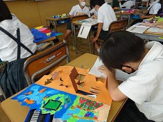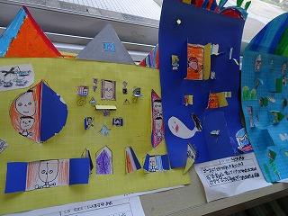 ↓2の1 図工 「まどをひらいて」お家の中はどんな様子かな。窓を開くと何が現れるのか。想像力を働かせ楽しんで作っていました。