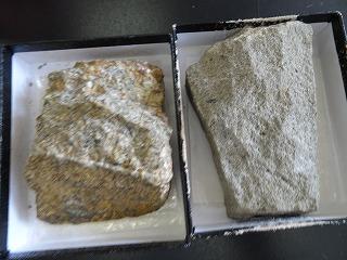 ↓6の2 理科 岩石の観察をしています。それぞれの岩石はどのようにしてできたのか、岩石から考えました。