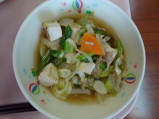 ↓今日の給食は、野菜いろいろ肉団子、ナムル、韓国風すき焼きでした。肉団子の中には、大きな枝豆も入っていて、彩りと栄養バランスが抜群でした。ナムルとは、もやしなどの野菜を塩ゆでし、ごま油であえた韓国の家庭料理です。野菜がたっぷりとれるので、家でもチャレンジしたい一品です。