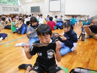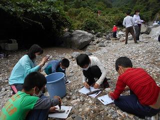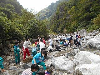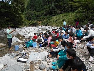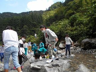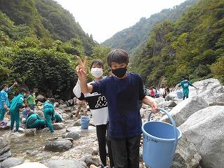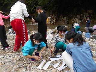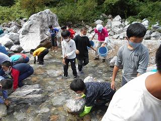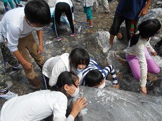 今年度は、宿泊はできませんでしたが、自然体験学習として、白山麓少年自然の家に日帰りで行ってきました。活動はイワナ掴みと川遊びです。大自然の川でイワナ掴みができるところは、めったにありません。合言葉は、「五感のアンテナ」です。視覚、聴覚、臭覚、触覚、味覚のアンテナを高くして、大自然を体験してきました。
