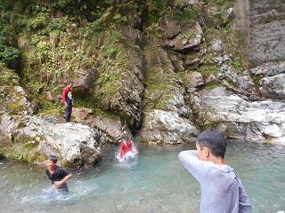 ↓イワナを焼く待ち時間に、川遊びチャレンジコースへスタート!
