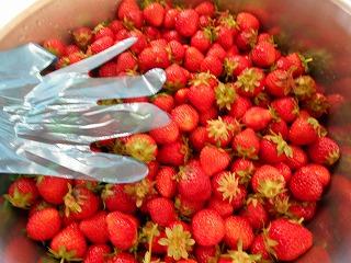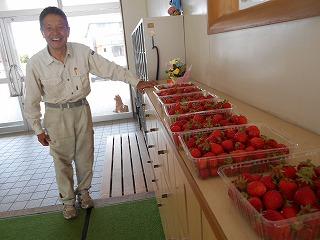 ↑ 地域でイチゴを栽培されている方が、1年生にといちごを持ってきてくださいました。甘い香りがするつやつやのいちごです。早速、コンポートにしていただきました。甘い甘いいちごをいただきました。ありがとうございました。