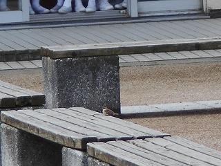 ↑ すずめの巣が、校舎の屋根にあったようです。そこから落ちた子すずめが、中庭にいるのを子供たちが見つけました。まだ飛べません。親すずめが心配して周りを飛んでいます。今日は、子すずめを応援して、条南子のみんなは、中庭で遊ぶのをやめました。条南子のみんなも心配して、子すずめをそっと見守っています。小さな生き物を思いやる条南子のやさしさに感心しました。がんばれ!子すずめ!