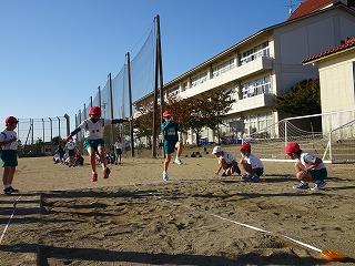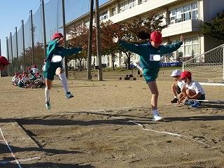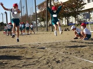 ↓3の3 体育 走り幅跳び 空中のフォームを意識して、遠くを目指して力強く跳びました。