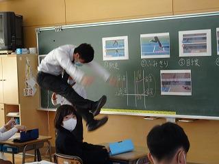 こんなに素晴らしい空中のフォームができたのも、教室での担任の先生の見本があったからです。↓