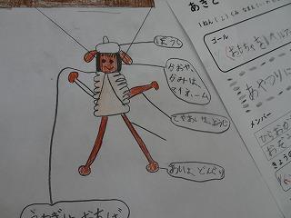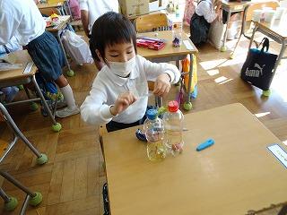 ↓1の3 生活科で秋のおもちゃ作りです。持ってきた材料で作っています。