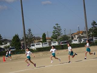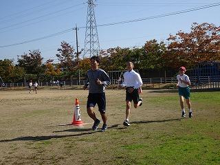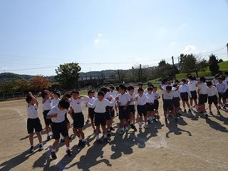↑ さわやかな秋晴れの下で、5分間ですがよい運動ができました。みんながいるから走ることができます。