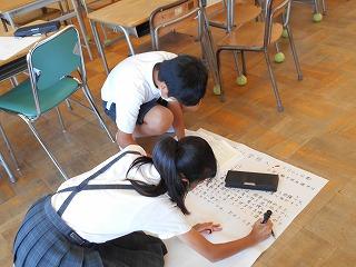 ↑6年1組国語 わたしたちにできること 提案シーに書いたことを基に、壁新聞づくりです。どんな提案があるのか、早く読んでみたいです。