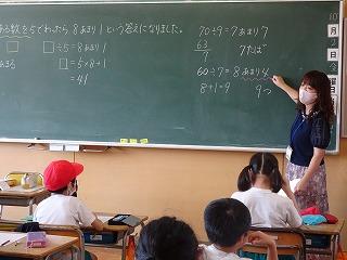 ↓今日の朝学習は、算数基礎問題です。各自が解いた後、解説をしています。