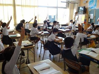 ↑5の1 家庭科 衣食住の住の学習です。すぐに散らかってしまう部屋を、住みよい部屋にするためにはどうすれば良いか、考えを出し合いました。
