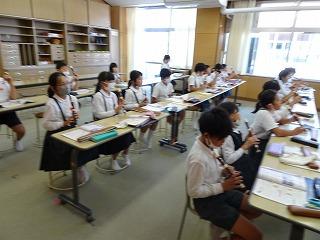 ↑4の3 音楽 リコーダーの練習をしました。指づかいを確認して、美しい音色をだそうと頑張りました。