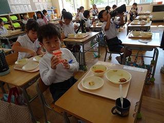↑今日の給食はイタリアンです。ミネストローネ、フライドチキン、キャベツのマリネです。本格派イタリアンで子供たちには大人気でした。ミネストローネはトマトを使ったイタリアの野菜スープ、たくさんの野菜をおいしくいただくことができました。