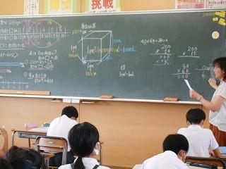 ↑5年1組の担任と、算数のテスト直しです。立方体の体積の求め方の単元が終了しました。「間違えは宝物」間違えた問題をしっかり直し、自学ノートで繰り返し練習してみてください。必ずできるようになりますよ。