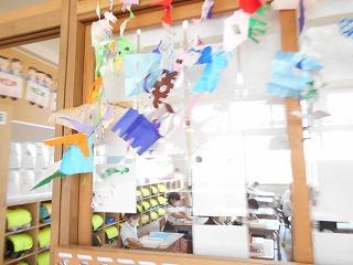 ↓1年生の飾りが、さわやかな風になびいています。