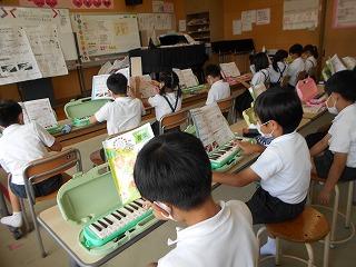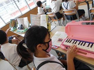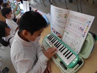 ↓3年音楽 鍵盤ハーモニカはまだ演奏できませんが、指づかいを練習しました。今は基本練習をしっかりしています。