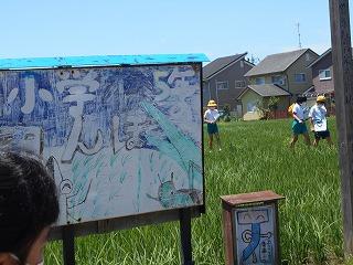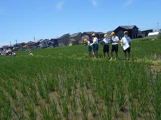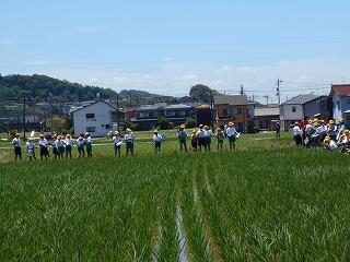 ↓5年総合的な学習 地域の舛田様のご協力で、5年生は田んぼの学習を進めています。今日は、5月に田植えをしていただいた田んぼの様子を観察してきました。舛田様にたくさん質問をして、疑問に思ったことを教えていただきました。今後ともよろしくお願いします。