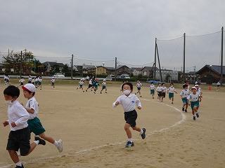 ↑一番外コースは、高学年の1周300mコースです。自分のリズムで走り、体力アップに挑みます。